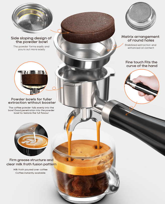 • Powerful 1350W motor for rich, flavorful espresso