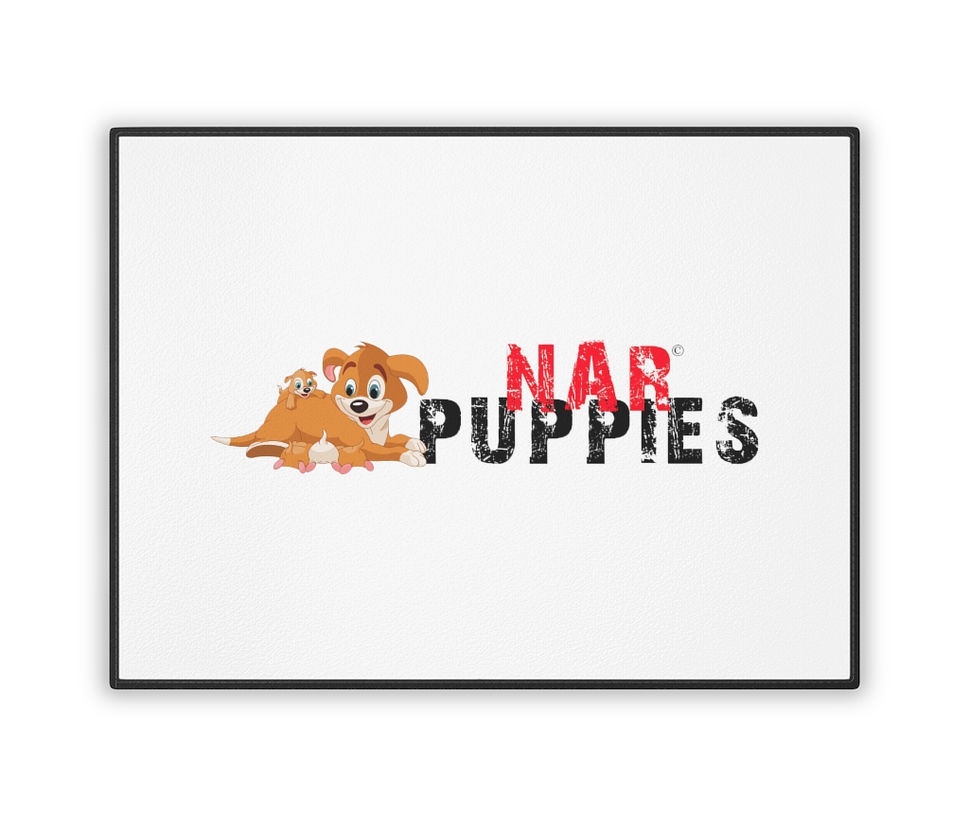 Pet Mat by NAR Puppies. Manufactured with 100% polyester, this tufted feeding mat for dogs is designed to be non-slippery on the backing. The size of the matt measures in at 18" by 24" in size.